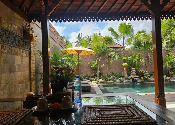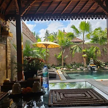 Von einer Terrasse aus kann man einen Ausblick auf den Innenhof genießen. Die Villa Ubud Paradise Luxury verfügt über ein Badezimmer mit einer behindertengerechten Dusche, einer getrennten Toilette und einem Whirlpool. Badezimmer sind auch mit einem Haartrockner, einer Duschhaube und Badelaken für Ihren Komfort ausgestattet.